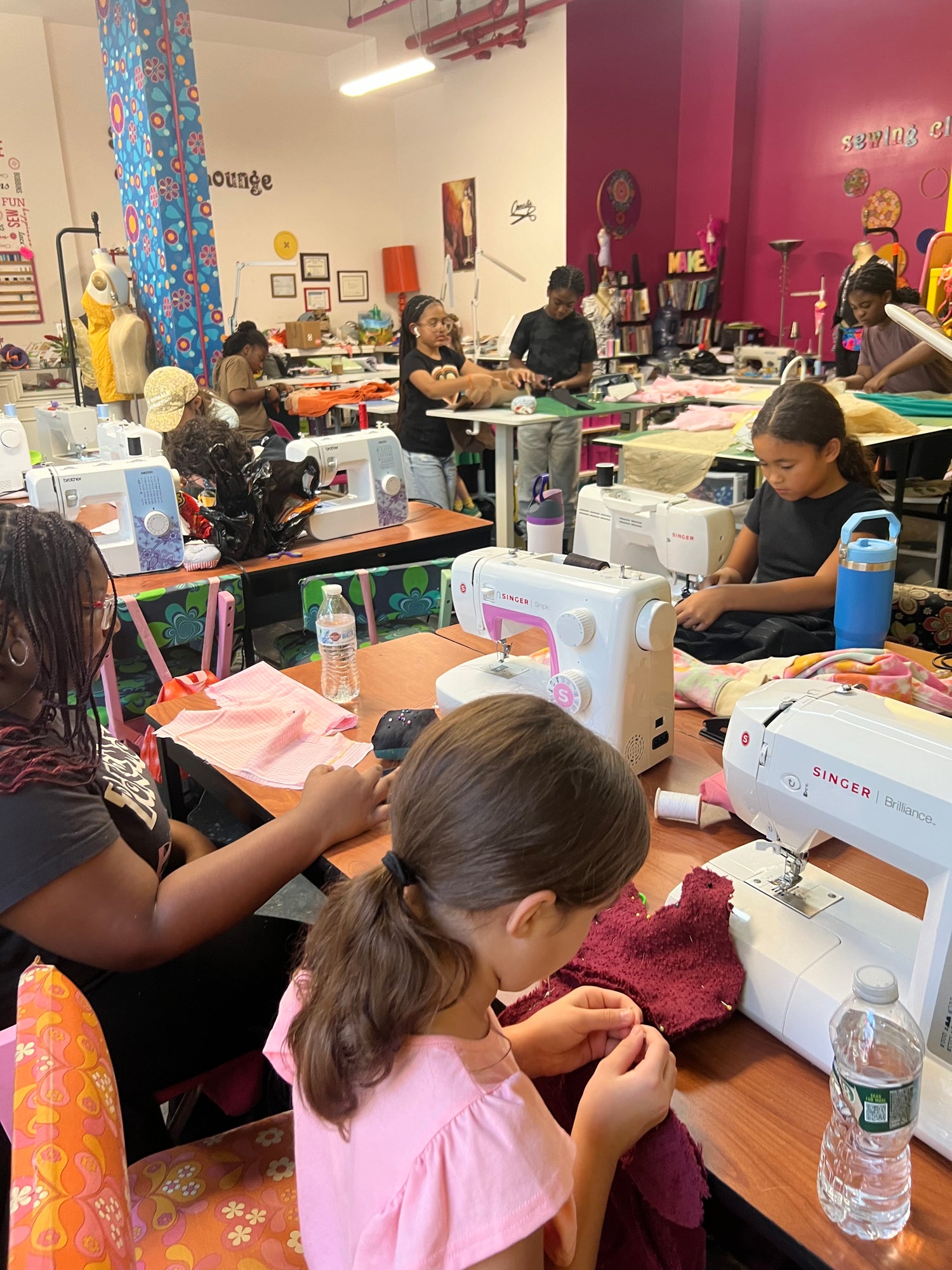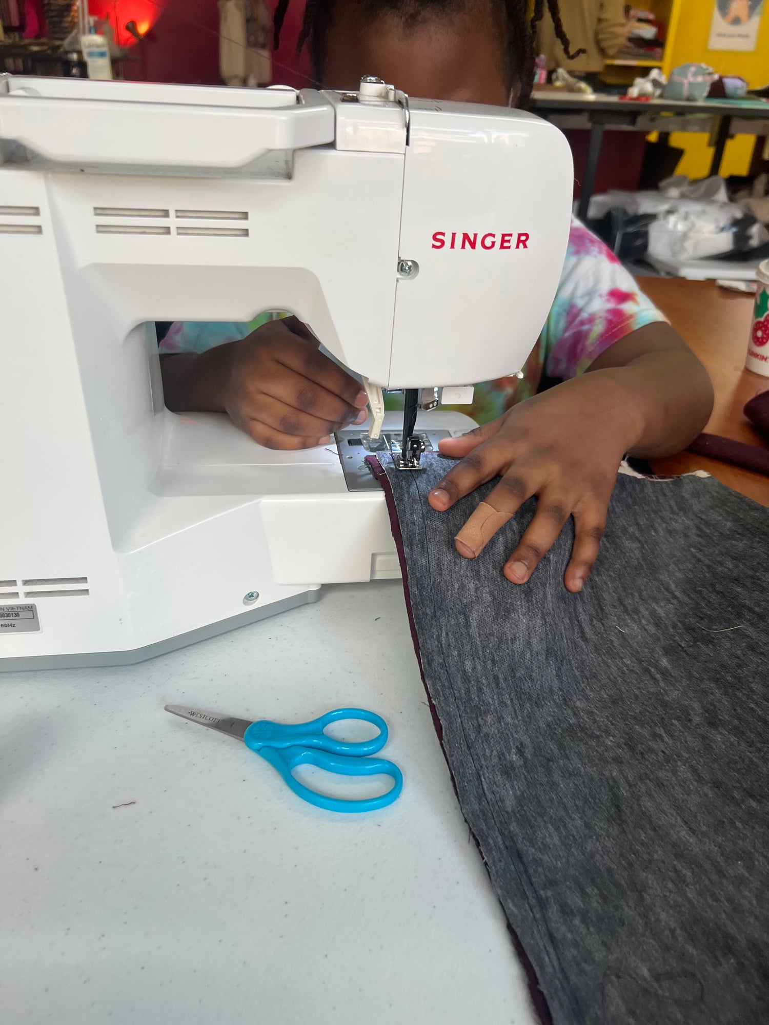Young people ages 6-16 learn how to use the Sewing Machine in these Group Sewing Classes, which includes but not limited to safety, its parts, threading & practice sheets. Young people learn hand, eye & foot coordination using their hands to guide, eyes to focus, and feet to sew. They are able to make a variety of sewing projects after they start with the initial famous pin cushion and sewing bag to keep all their crafty projects and sewing supplies from getting lost. The best thing about sewing is there’s Always something new to learn! Kids just being kids and having the best times Sewing!